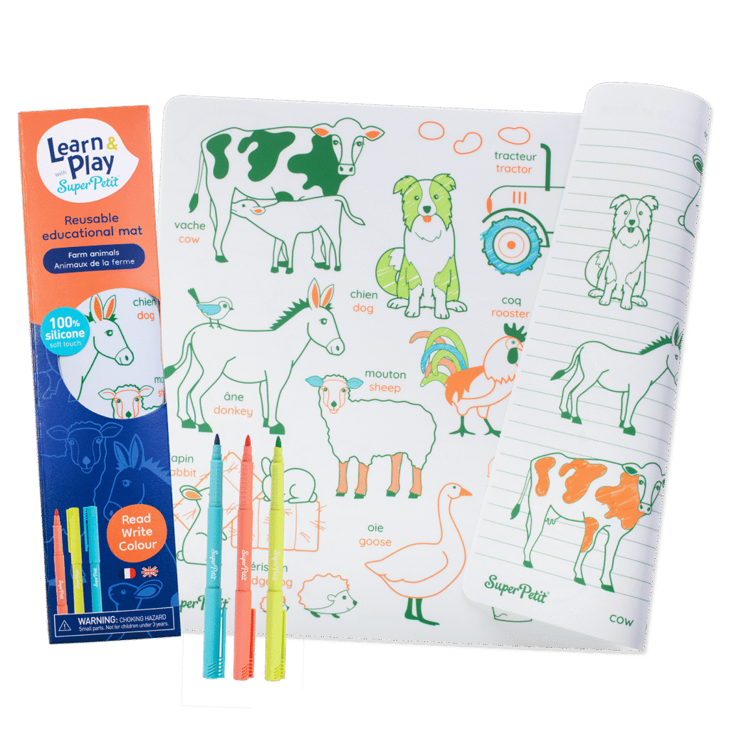 Ils s’effacent facilement de nos sets en silicone à l’eau ou avec un chiffon humide et sont évidemment compatibles avec tous les coloriages SuperPetit !